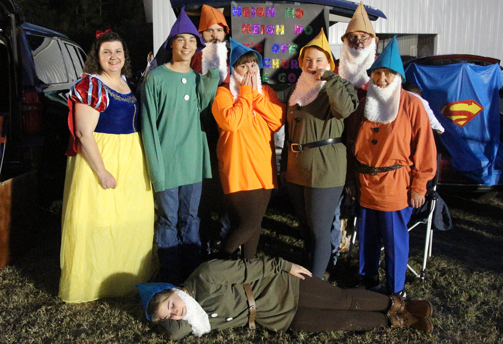 Pictured top: A game of “Angry Birds” during a community fall festival Monday night in Molino. Pictured inset: Choosing that perfect prize. Pictured below: Trunk or Treating with Snow White and the Seven Dwarfs. NorthEscambia.com photos, click to enlarge.