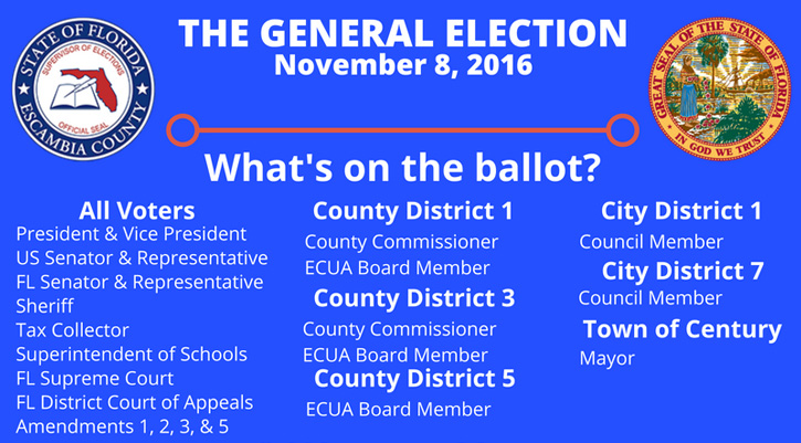 This graphic from the Escambia County Supervisor of Elections shows what races are on the ballot in Escambia County in tomorrow’s general election. To download a customized sample ballot, visit EscambiaVotes.com.