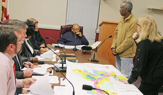 Pictured top: Wayne Prescott (standing top right) addresses the Century Town Council. NorthEscambia.com photos, click to enlarge. Pictured inset and below: Escambia County Property Appraiser information on Prescott’s property.