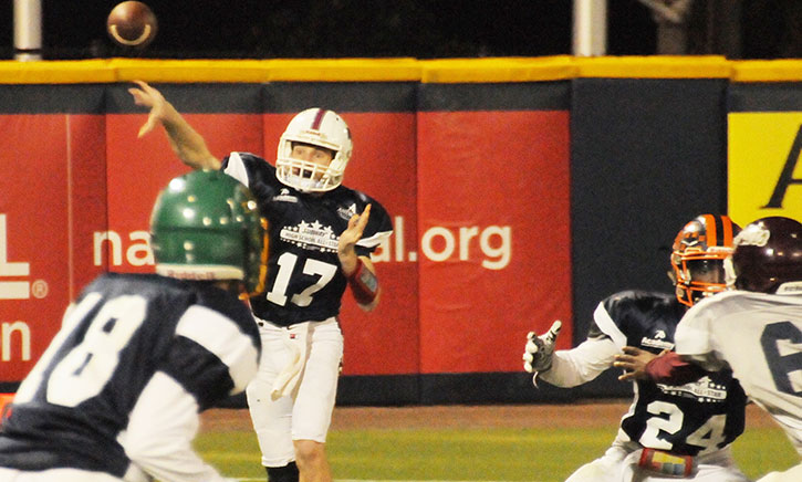 The first score came for the West on a 15-yard touchdown pass from Z’Khari Blocker (Escambia) to AJ Yates (Catholic).