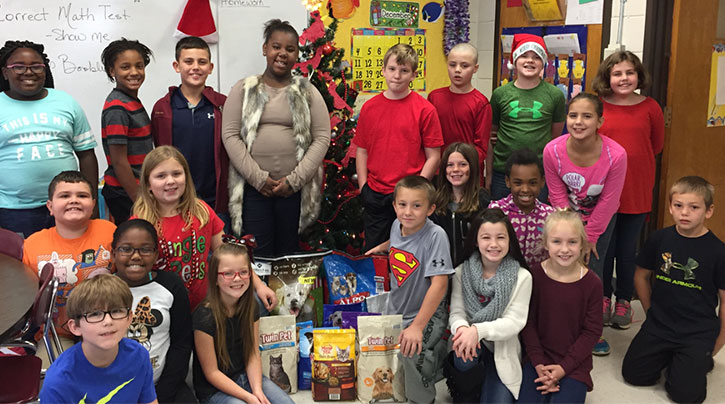 Cheryl Massey’s fourth grade students at Jim Allen Elementary School collected pet food for the Pensacola Humane Society. This was the 10th year Massey has sponsored a pet food donation. Photo for NorthEscambia.com, click to enlarge.
