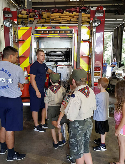 To mark 9/11 on Sunday, Webelos Scouts from Pack 499 and a girl scout from Troop 913, surprised local heroes at the Ferry Pass Fire Station with baked goods, handshakes and thank-yous for all they do everyday to protect the local community. The scouts also received a station tour. Photos for NorthEscambia.com, click to enlarge.