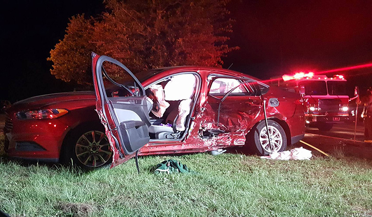 One person was injured in a crash Sunday night on Mobile Highway at Klondike Road. Further details have not yet been released by the Florida Highway Patrol as they continue their investigation. NorthEscambia.com photos by Kristi Barbour, click to enlarge.