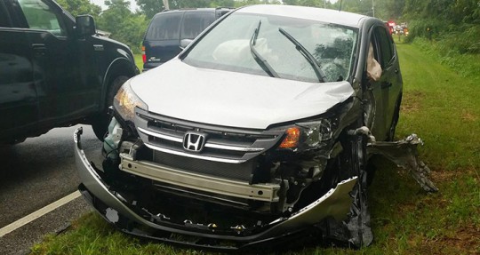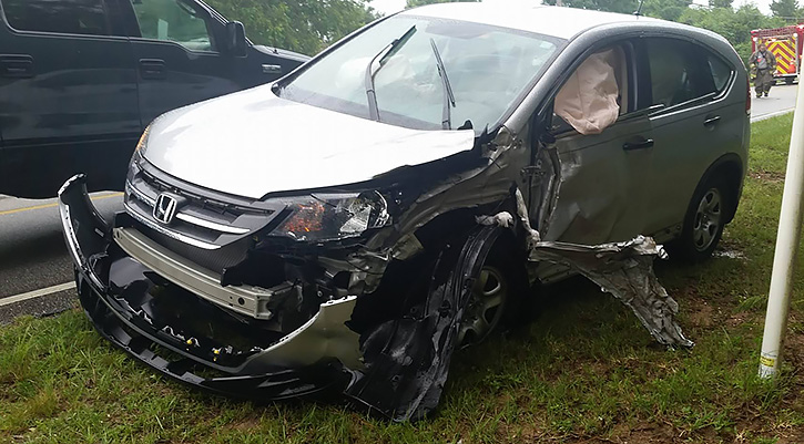 There were no serious injuries reported in a two vehicle crash Monday on Highway 95A south of Molino. The wreck involving a Honda SUV and a Dodge pickup occurred about 3:36 p.m. on Highway 95A south of Cedartown Road. The accident temporarly blocked traffic in both directions on Highway 95A. NorthEscambia.com photos by Kristi Barbour, click to enlarge.