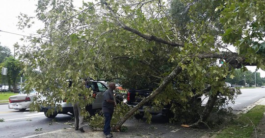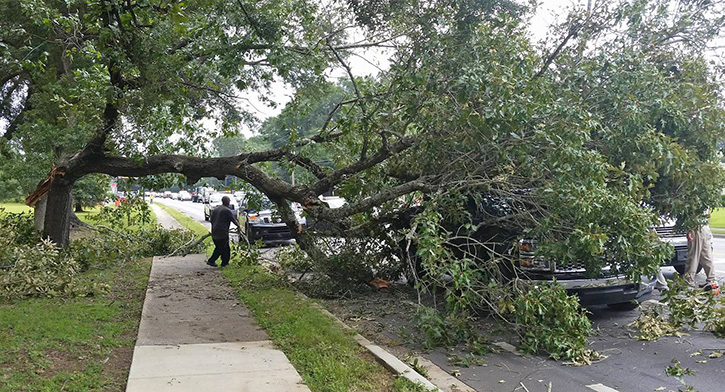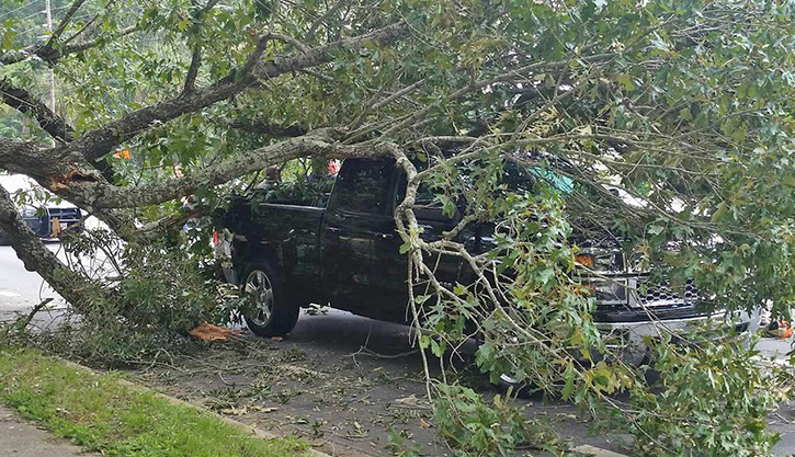 Bad Monday: Tree Crashes Down Onto Two Vehicles Sitting In Traffic