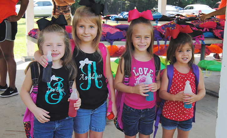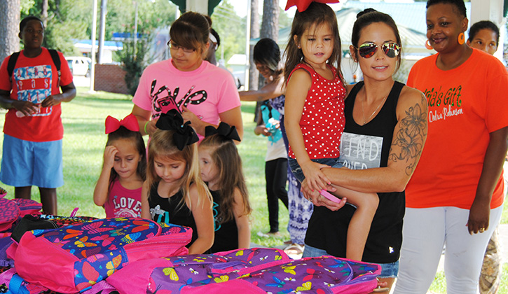 Free backpacks and school supplies were distributed recently in Century to hundreds of children in need, thanks to a family honoring the memory of one of their own, in a program called “Dedria’s Gift”.
