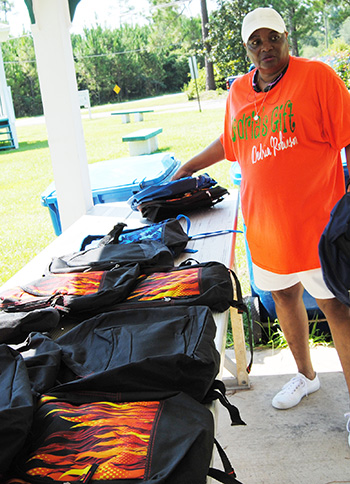 The book bags full of supplies were distributed in memory of Dedria Robinson, who was killed in 2005 in an automobile accident at age 11.