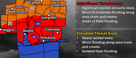 A significant amount of rainfall is expected through Saturday, with 6-12 inches possible. Here is your official North Escambia area forecast: