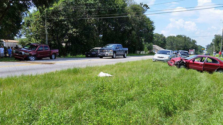 The child was transported by Escambia County EMS to an area hospital following the crash on Chemstrand Road. Further details, including the child’s age and condition, were not available.