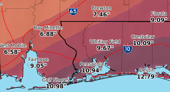 The National Weather Service in Mobile is forecasting an extended period of heavy rain, with rainfall amounts in our area up to 12 inches Tuesday through Saturday.