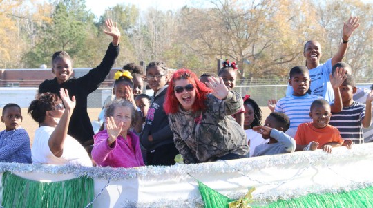 Pictured top: A musical selection from members of the Pilgrim Lodge Mass Choir. Pictured inset: Essay contest winner Zipporah Harris reads her essay to the crowd. Pictured below: A MLK Day motorcade passes on Pond Street in Century Monday morning. NorthEscambia.com photos, click to enlarge.