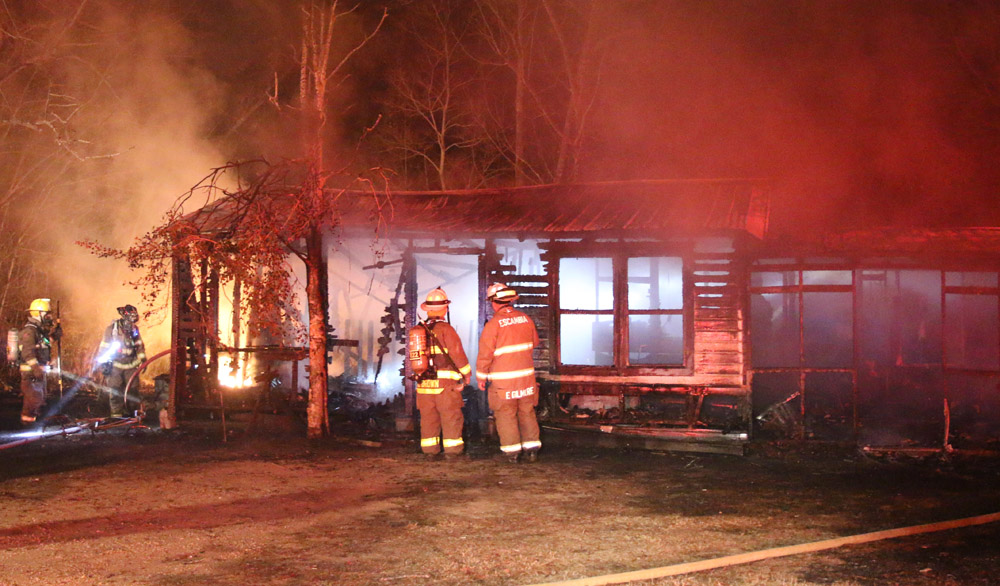 Fire destroyed a two story home in the 1200 block of West 9 ½ Mile Road on December 30. The fire was reported about 5:30 am. with heavy flames through the roof when firefighters arrived. Initial reports indicated the fire may have originated in the garage of the home. Two adults and two teenagers were displaced from the home.