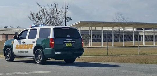 According to Maj. Andrew Hobbs of the Escambia County Sheriff’s Office, a deputy attempted a traffic stop when someone bailed out of the vehicle and ran. Deputies and a K-9 unit were attempting to track the suspect inside a perimeter setup with deputies along Highway 97 and Crabtree Church Road behind the school.