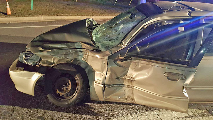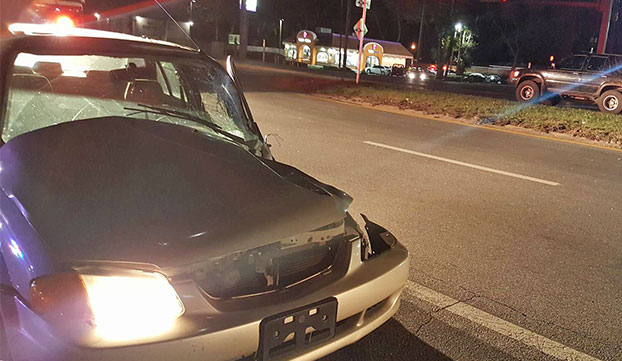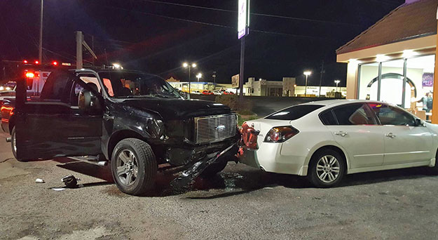 A pickup truck and car apparently collided in the northern part of the intersection. The pickup then continued across Nine Mile Road onto Chemstrand Road, jumped a ditch a hit a parked car in the parking lot of Taco Bell. None of the injuries were believed to be life threatening.