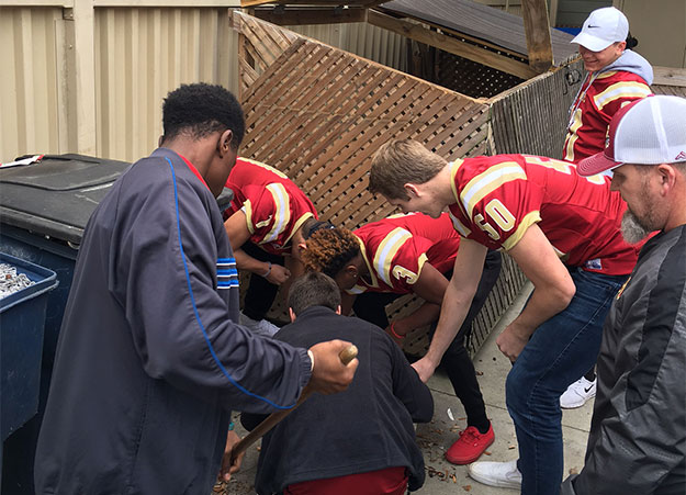 Members of the Northview Chiefs football team spent their Saturday morning volunteering at the Ronald McDonald House in Pensacola.