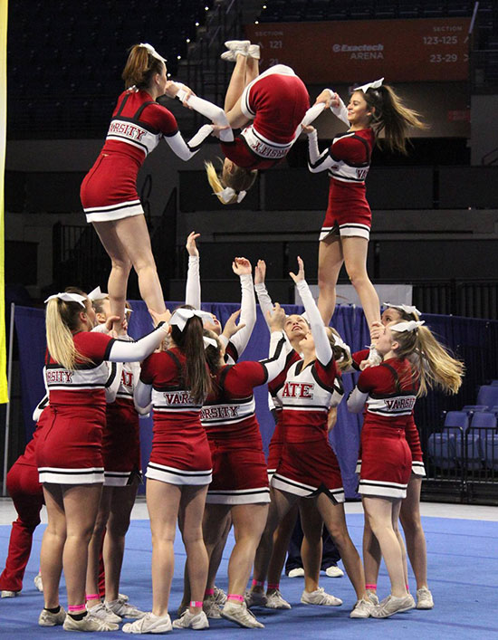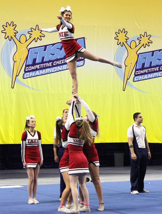 Saturday, the Tate High School Varsity Cheerleaders competed at the state championships for the first time as a coed team. They placed fourth in the state among 2A small coed teams during competition in Gainesville. Photos for NorthEscambia.com, click to enlarge.