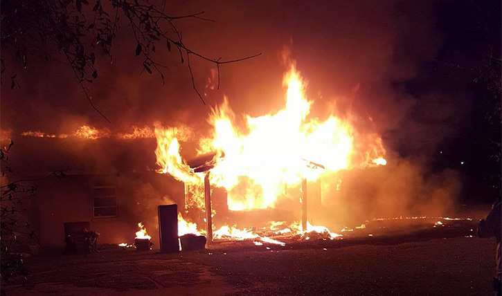 The home, on Pecan Leaf Lane off Highway 113, was fully involved when the first 911 call was received just after 5:30 a.m.. The home was total loss.