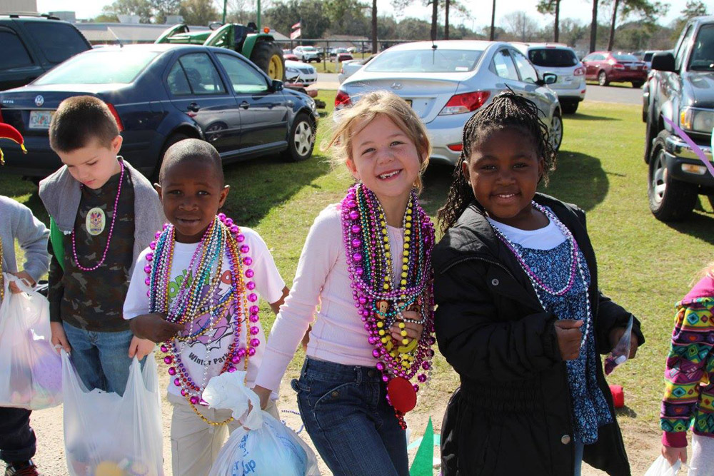 With plenty of beads, Moon Pies, stuffed animals and smiles, the parade rolled through the school parking lot for students that might not otherwise be able to attend a regular Mardi Gras parade.