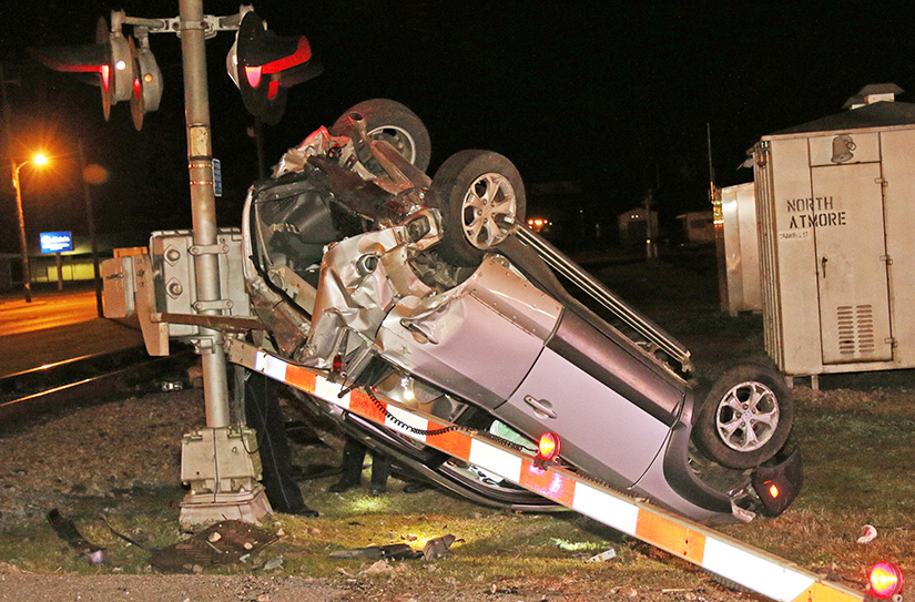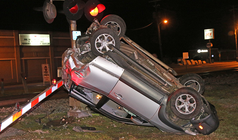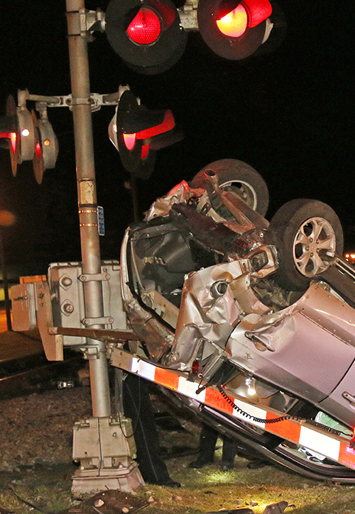 The crash happened about 1:45 a.m. at the Trammell Street crossing just off Nashville Avenue. Reports indicated the driver had turned off the roadway and attempted to drive down the railroad tracks where his vehicle became stuck before being hit by the westbound CSX freight train The vehicle apparently became airborne and became lodged against a crossing arm signal pole.