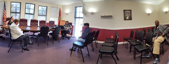 Pictured top: This panoramic photo show three Century staffers, Councilman Gary Riley and one member of the public at a public workshop Thursday morning. NorthEscambia.com photo, click to enlarge.