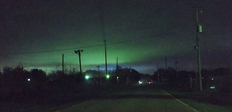Pictured: A green glow that was reported along with the meteorite Saturday night as seen from Godwin Lane in Pensacola. NorthEscambia.com photo by Kelly Senft, click to enlarge.