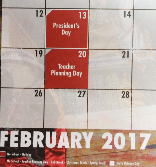 “The only school holiday in February occurs on Monday, February 20, which is also President’s Day,” Thomas said.
