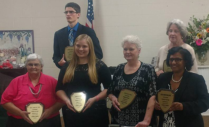 Pictured top: (front, L-R) Century Citizen of the Year Rev. Janet Lee, Century UMC; Flomaton Student of the Year Karrie Gibson, Flomaton High; Flomaton Business of the Year Louise’s Beauty Shop, Stylist Christine Stanton; Century Business of the Year Sandra McMurray Jackson, Jackson-McMurray Funeral Services; (back) Century Student of the Year Zachary Sheldon, Northview High; and Flomaton Citizen of the Year Wanda Vanlandingham. Photo for NorthEscambia.com, click to enlarge.