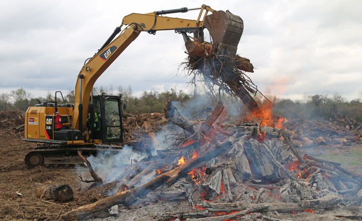 The downed trees were transported to an empty lot in the town’s industrial park. The first of those piles was burned Tuesday.