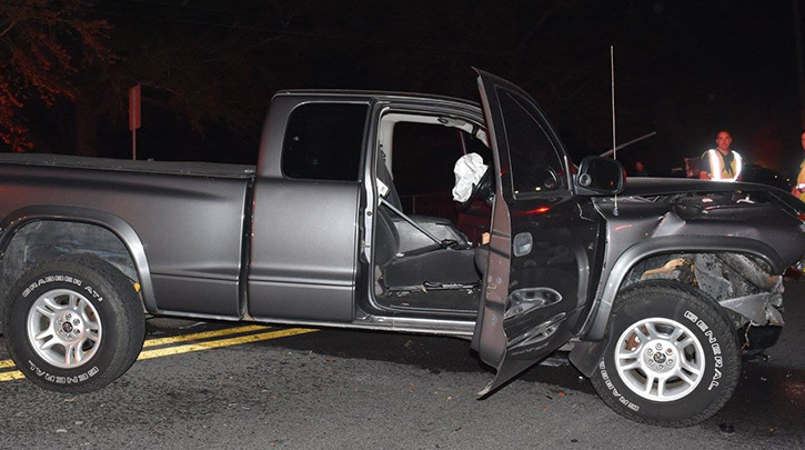 The near head-on collision between a car and a pickup sent at least one person to the hospital as a “trauma alert”.