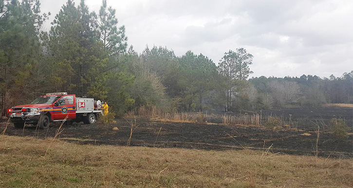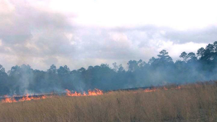 Firefighters from multiple Escambia Fire Rescue stations and the Florida Forest Services battled a 10-acre wildland fire Tuesday afternoon on Fairground Road.