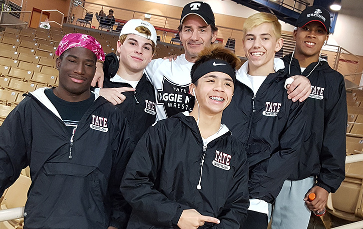 Pictured top: Tate wrestler Alex Porter placed fifth in the state. Pictured top: Pictured below (front, L-R) Alex Porter, Jacob Cochran, (back) Kendall Townley, Coach Reggie Allen, Matthew Blalock and Juan Alvarez. Photos for NorthEscambia.com, click to enlarge.