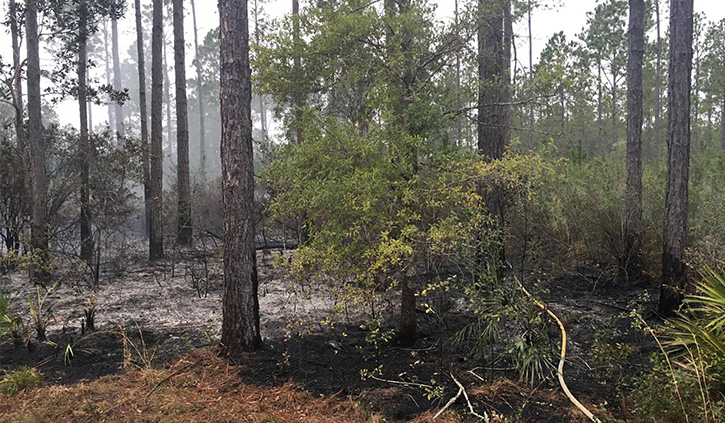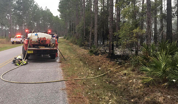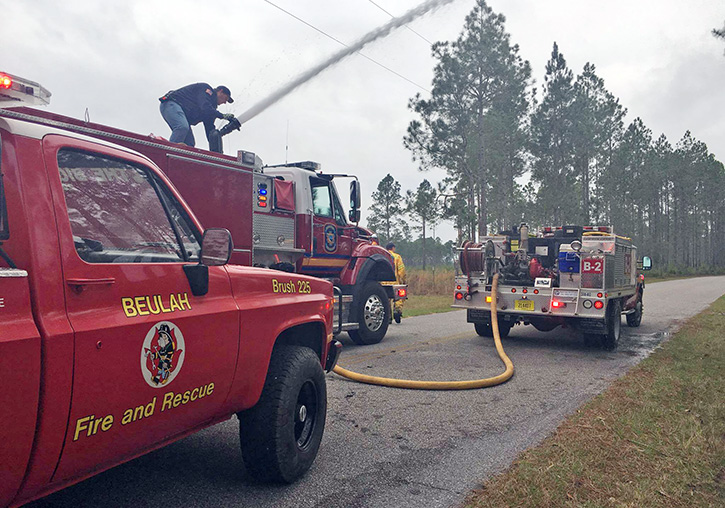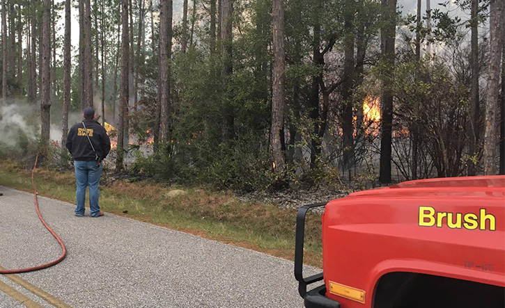 The Beulah Station of Escambia Fire Rescue battled a wildland fire Sunday morning on Hurst Hammock Road. There were no injuries reported, and no structures damaged. Photos for NorthEscambia.com, click to enlarge.