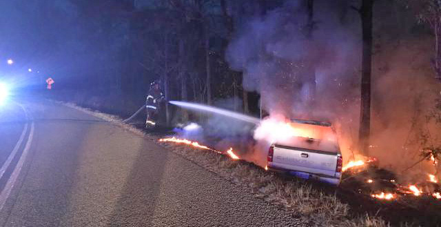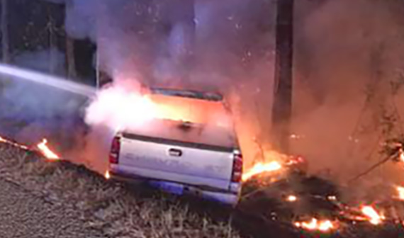 The accident happened just before 5:45 a.m. in the 4300 block of Old Atmore Road in Flomaton when the driver of a pickup truck failed to negotiate a curve, left the roadway and struck a tree. The driver was able to escape the vehicle before it burst into flames.