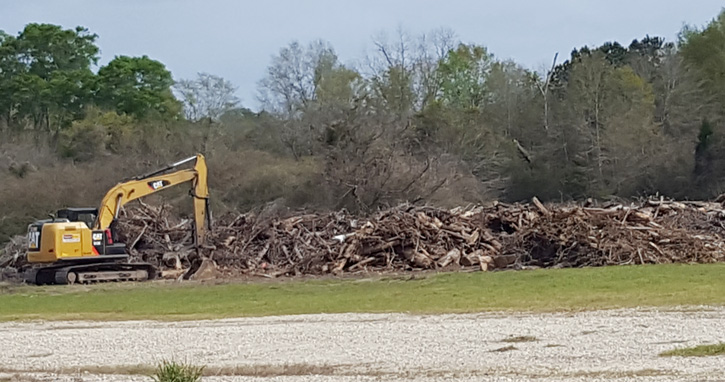 Pictured: Piles of 2016 tornado debris remaining to be burned in the Century Industrial Park on Friday afternoon, March 24, 2017. NorthEscambia.com photos, click to enlarge.