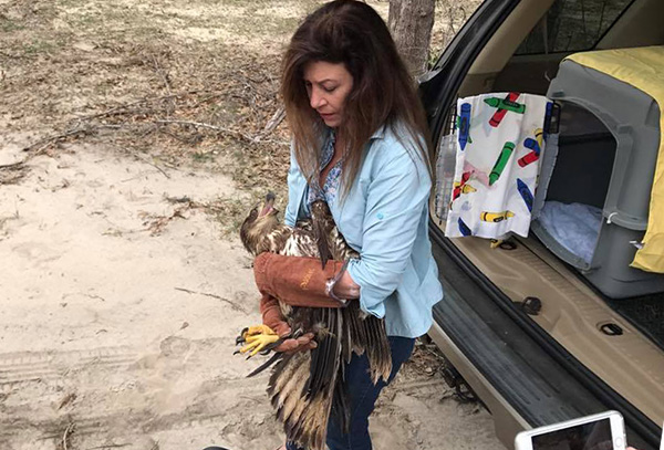 Mardi Gras the Eagle was found at the Santa Rosa County landfill and was taken to the wildlife sanctuary for rehab when they realized Mardi wasn’t doing too well. The sanctuary believes the eagle is about two years old and a female because her wingspan is about eight feet. Females are always larger than males.