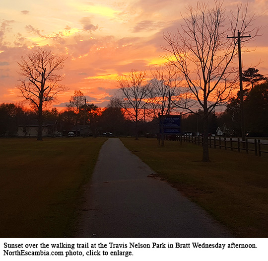 Escambia County District 5 Commissioner Steven Barry and Public Works Director Wes Moreno toured several North Escambia locations Wednesday afternoon. They checked on the progress of paving several dirt roads and the progress of other current and potential future infrastructure projects. Pictured above: Barry (right) and Moreno discuss the upcoming paving of Bradberry Road off North Highway 99 near the Alabama state line. NorthEscambia.com photo, click to enlarge.
