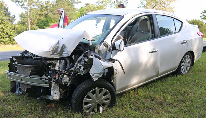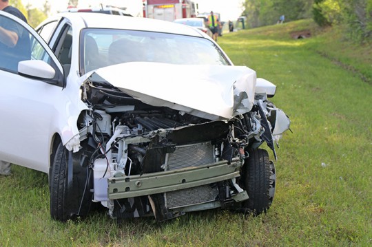 There were no injuries when a driver slammed into a horse trailer and pickup Tuesday afternoon on Highway 29 in McDavid.
