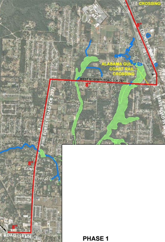 The pipeline will interconnect to an existing pipeline and begin on Fannie Road just northeast of Century on the Alabama/Florida state line. The pipeline will follow Fannie Road to Old Flomaton Road to State Road 4 to North Century Boulevard.