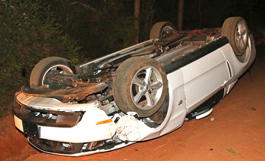 A 2010 Ford Mustang GT was discovered upside down on South Pineville Road, south of Arthur Brown Road. The driver of the vehicle was no longer with the vehicle when emergency personnel arrived on scene. The vehicle had a North Carolina license plate.