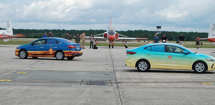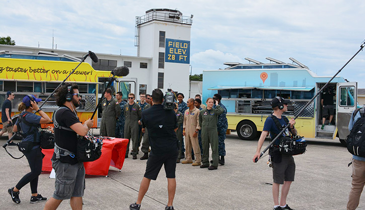 For lunch aboard Naval Air Station Pensacola, Commanding Officer Capt. Christopher Martin helped the show’s host, Tyler Florence, announce the winning team as decided by 50 service members who acted as judges in a taste testing.