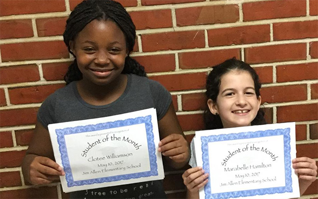 Jim Allen Elementary School has named Students of the Month for May. They are Clotee Williamson (left) and Marabelle Hamilton. Courtesy photo for NorthEscambia.com, click to enlarge.