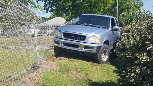 A driver struck fence and a few bushes on Highway 95A at Woodbury Circle in Cantonment about 9:20 Sunday morning. She was not injured.