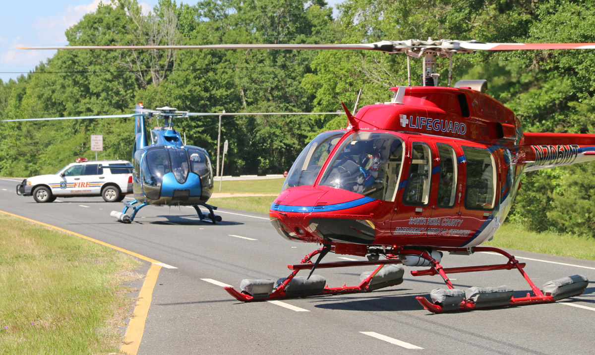Jay Byfield, 32, and Jared Leve, 37, both of Pensacola, were airlifted by LifeGuard and LifeFlight helicopters to Sacred Heart Hospital in Pensacola in serious condition. Passenger Christina Walton, age 37 of Pensacola, was transported by ambulance to Sacred Heart Hospital with minor injuries.