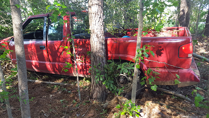Pickup Truck Found Wrecked In Walnut Hill Wooded Area