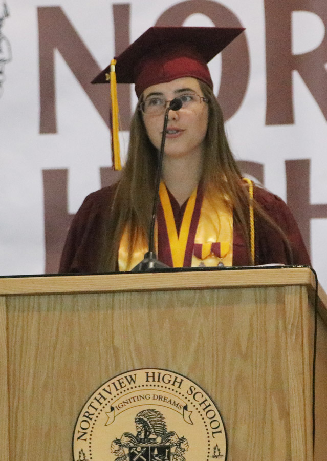 “Don’t just avoid the things that you will regret doing, but actively seek out the experiences that you will regret not having,” Salutatorian Kaitlyn Nicole Pugh told the class.