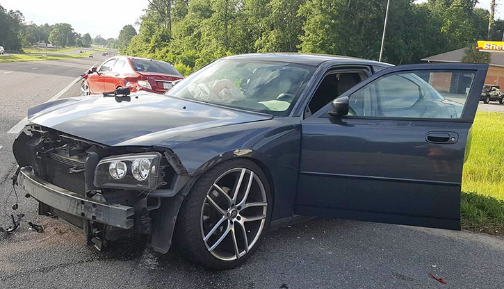 My wife was in that spot near the time this happened. I’m (obviously) so glad she wasn’t involved. I hope everyone that was involved is ok, however. Looks like the red car (possibly a Mercedes? I’m not great with cars) may have tried to cross the highway and was hit by the oncoming black charger? Well again, I hope everyone is ok. This is why it’s important to wear a seatbelt: you never know when tragedy will strike.
