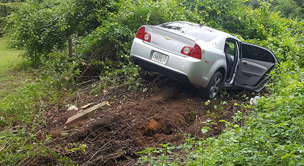 There were no injuries when in single vehicle wreck Tuesday morning on in the 1900 block of West Kingsfield Road. The driver lost control, left the roadway and struck an embankment. The accident is under investigation by the Florida Highway Patrol. NorthEscambia.com photos by Kristi Barbour, click to enlarge.