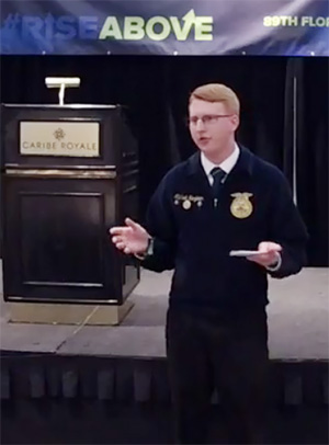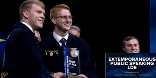 Northview High School FFA member Mitchell Singleton won first place in the state in the FFA Extemporaneous Public Speaking competition Thursday afternoon in Orlando. Images for NorthEscambia.com, click to enlarge.