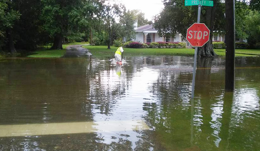 Heavy rainfall cause minor flooding across the North Escambia area Thursday afternoon. The flooding included the “normal” areas around Presley Street in Atmore (pictured). Reader photos by Eric Hare for NorthEscambia.com, click to enlarge.