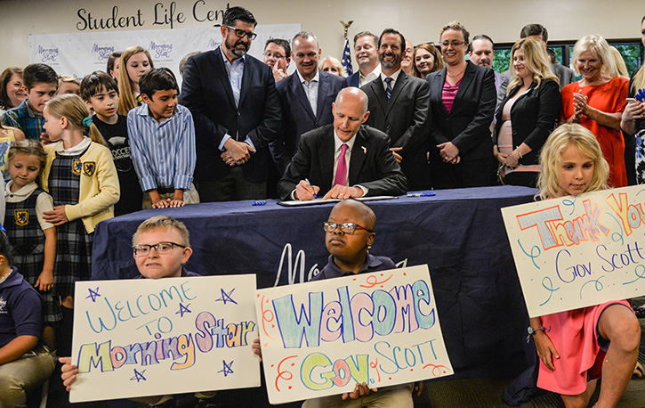 “The historic funding we’ve secured, along with more choices for students, will give every family in Florida the ability to receive a quality education, no matter what ZIP code they live in,” Scott said during the event at the Morning Star Catholic School.